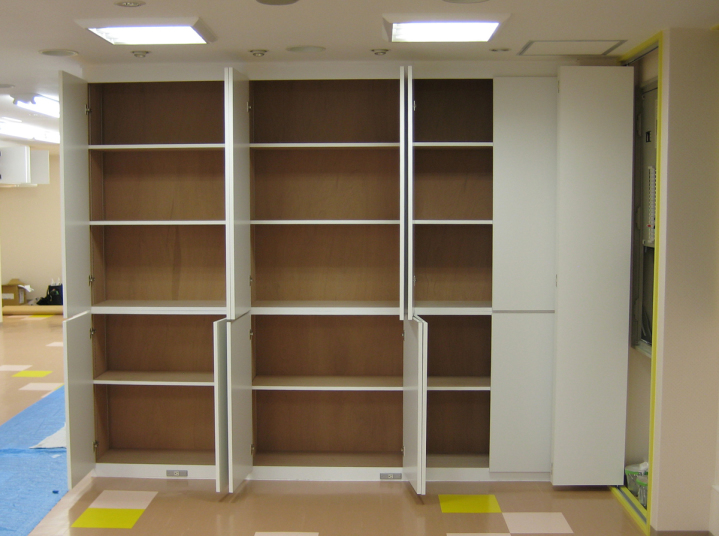 オープン/扉付収納棚 (ポリ合板・メラミン化粧板仕上)